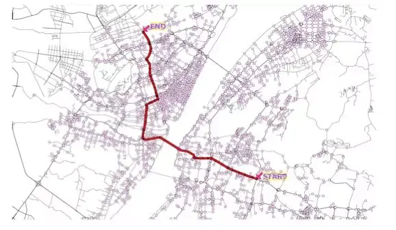 计算结束后,获取了一条当时最优路径。当车行驶到某个节点时,通过传感器发现该节点已经无法通行(有障碍物),则对已存储的路网信息一些相关点的h值进行修改(变大),选择一个邻居点满足仍然h==k的,即仍然是最优路径上的点,作为下一个点。