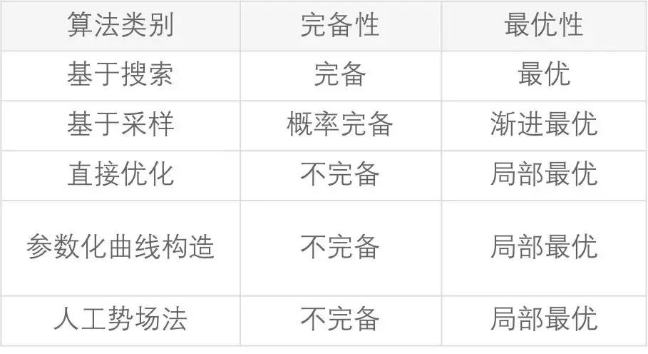 1)完备性(Completeness):如果在起始点和目标点间有路径解存在,那么一定可以得到解,如果得不到解那么一定说明没有解存在;
